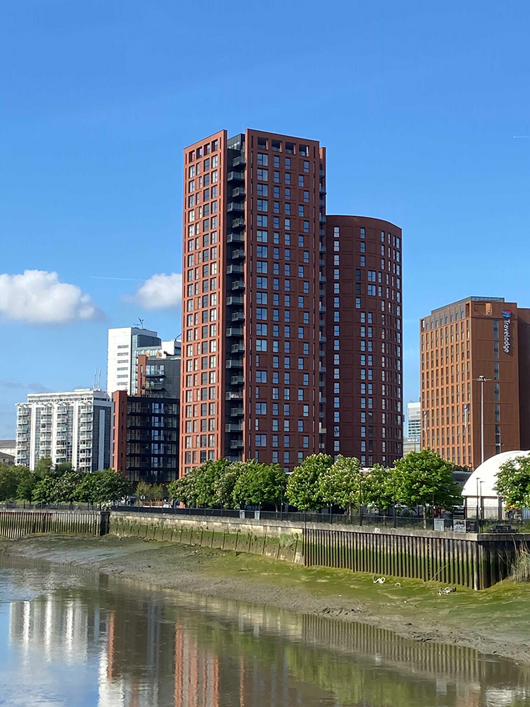 Situated on the picturesque west bank of the River Lea, within the historic East India Docks vicinity, Orchard Wharf stands as a testament to Salisbury Glass’s unwavering commitment to transforming architectural concepts into vibrant reality. Encompassing more than 3,600 square meters, the site features two prominent structures: a commanding 23-storey tower and stepped blocks ranging from 20 to 8 storeys. These buildings are thoughtfully interconnected by a two-storey ground-level podium, creating a visually striking cascading architectural marvel.